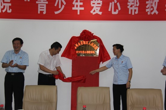 禇靖娟院長與彭勃副總為“青少年愛心幫教基地”揭牌